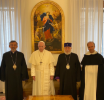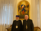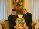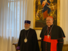 Accompanied by Archbishop Khajag Barsamian, Representative of the Armenian Apostolic Church in Rome, the Catholicos also met with Cardinal Leonardo Sandri, Prefect of the Congregation for the Oriental Churches, Cardinal Kurt Koch, President of the Pontifical Council for Promoting Christian Unity, and Bishop Brian Farrell, Secretary of the latter. His Holiness Karekin II also gathered in prayer before the Holy Sunday Mass celebrated at the Altar of the Chair of Saint Peter in the Vatican Basilica.
