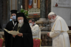 À la prière œcuménique en l'église Santa Maria in Aracoeli ont pris part le Pape François et le Patriarche œcuménique Bartholomée, l’Évêque Heinrich Bedford-Strohm, Président du Conseil de l'Église évangélique d'Allemagne, ainsi que des responsables d'autres traditions chrétiennes parmi lesquels l'Archevêque Ian Ernest, Représentant de l'Archevêque de Canterbury à Rome, le Métropolite Joseph (Pop) de l'Église orthodoxe roumaine, l'Archevêque Khajag Barsamian de l'Église apostolique arménienne (Etchmiadzine), l’Évêque Ambroise (Muntjanu) de l'Église orthodoxe russe, le Pasteur Luca Maria Negro, Président de la Fédération des Églises protestantes d'Italie, la Diacre Alessandra Trotta, Modératrice de la Table vaudoise, la Pasteure Mirella Manocchio, Présidente des Églises méthodistes italiennes, et le Pasteur Michael Jonas de l'Église luthérienne de Rome.