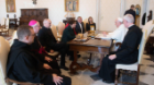 La Modératrice était accompagnée de son mari, le Révérend Stuart, également ministre ordonné, ainsi que du Révérend Ian Alexander, responsable des partenariats internationaux pour l'Église d'Écosse, de la Révérende Tara Curlewis, nouvellement nommée ministre de la congrégation de l'Église d'Écosse à Rome, et de Mme Fiona Kendal, de l'Agence pour les migrants et les réfugiés de la Fédération des Églises protestantes en Italie. S. Exc. Mgr Brian Farrell, Secrétaire du dicastère pour la promotion de l'unité des chrétiens, et le Révérend Père Martin Browne, OSB, official de la Section occidentale du dicastère, ont également pris part à l’audience du Saint-Père.