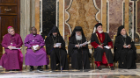À l’audience ont participé le Patriarche Bartholomée, le Patriarche Théophile III, le Patriarche Mar Awa III et le Patriarche Sahag qui avaient rencontré le Saint-Père auparavant pour des entretiens privés.