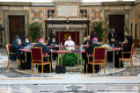 Dopo un breve momento di raccoglimento presso l’Altare della Confessione, gli ospiti del Santo Padre si sono riuniti nella Sala Clementina del Palazzo Apostolico per tre sessioni di consultazioni a porte chiuse.