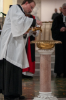 Per la commemorazione battesimale comune è stato usato lo storico fonte battesimale del 1832, originariamente donato per uso liturgico nella cappella protestante della legazione tedesca. Sul fonte battesimale si legge il verso di una poesia battesimale di Papa Sisto III (IV secolo), che è anche inciso sull’architrave del Battistero della Basilica Lateranense.
